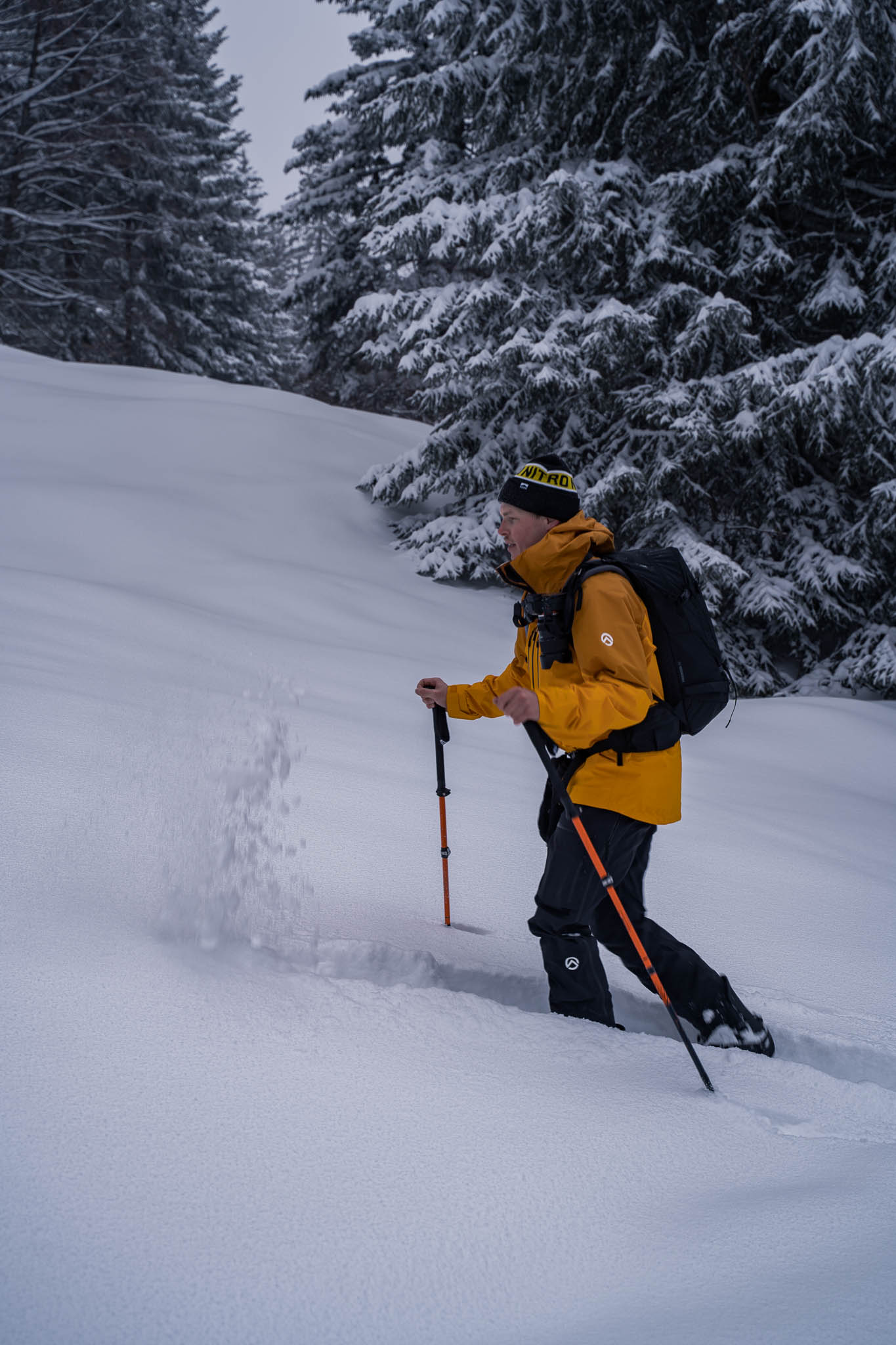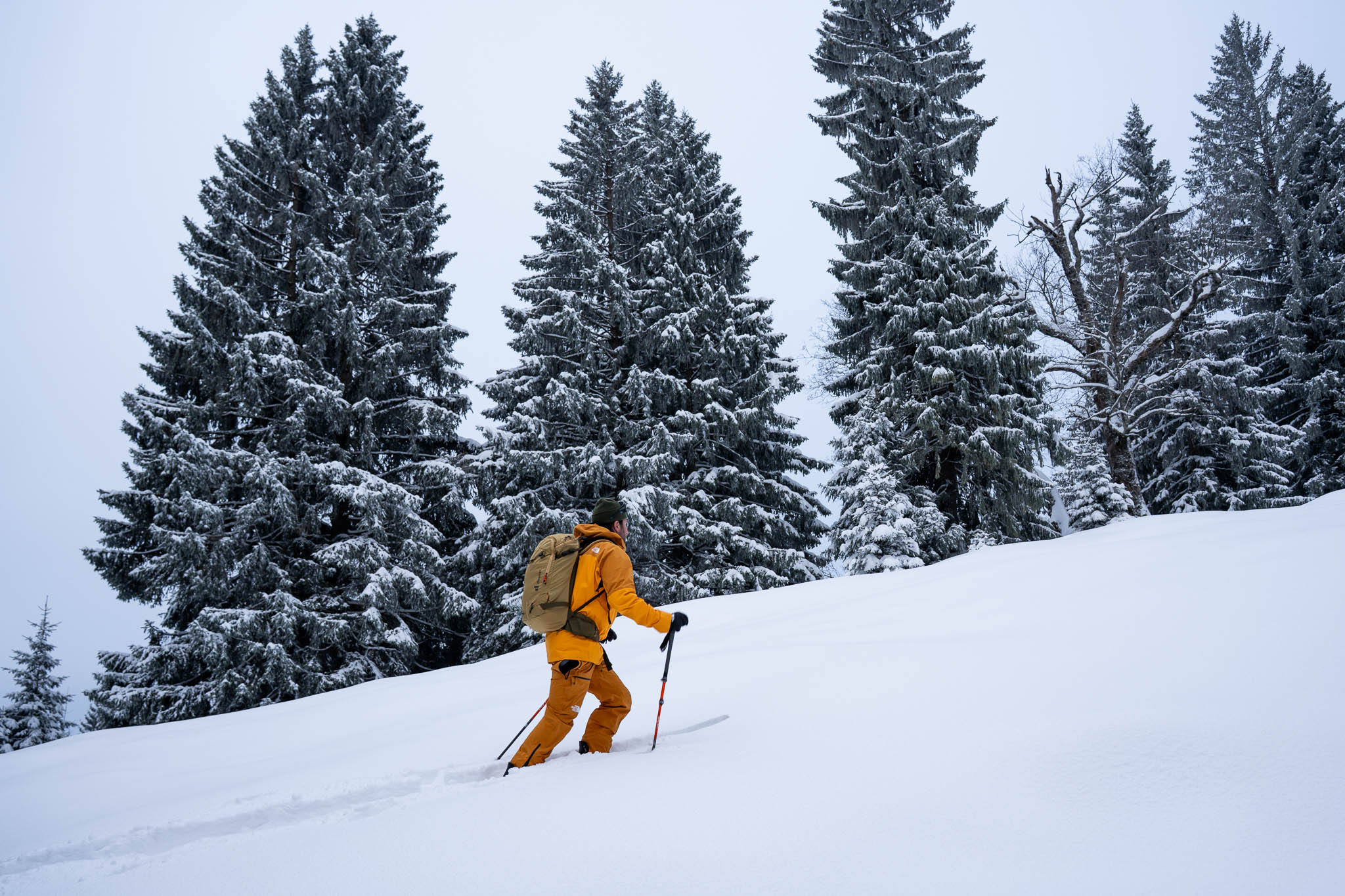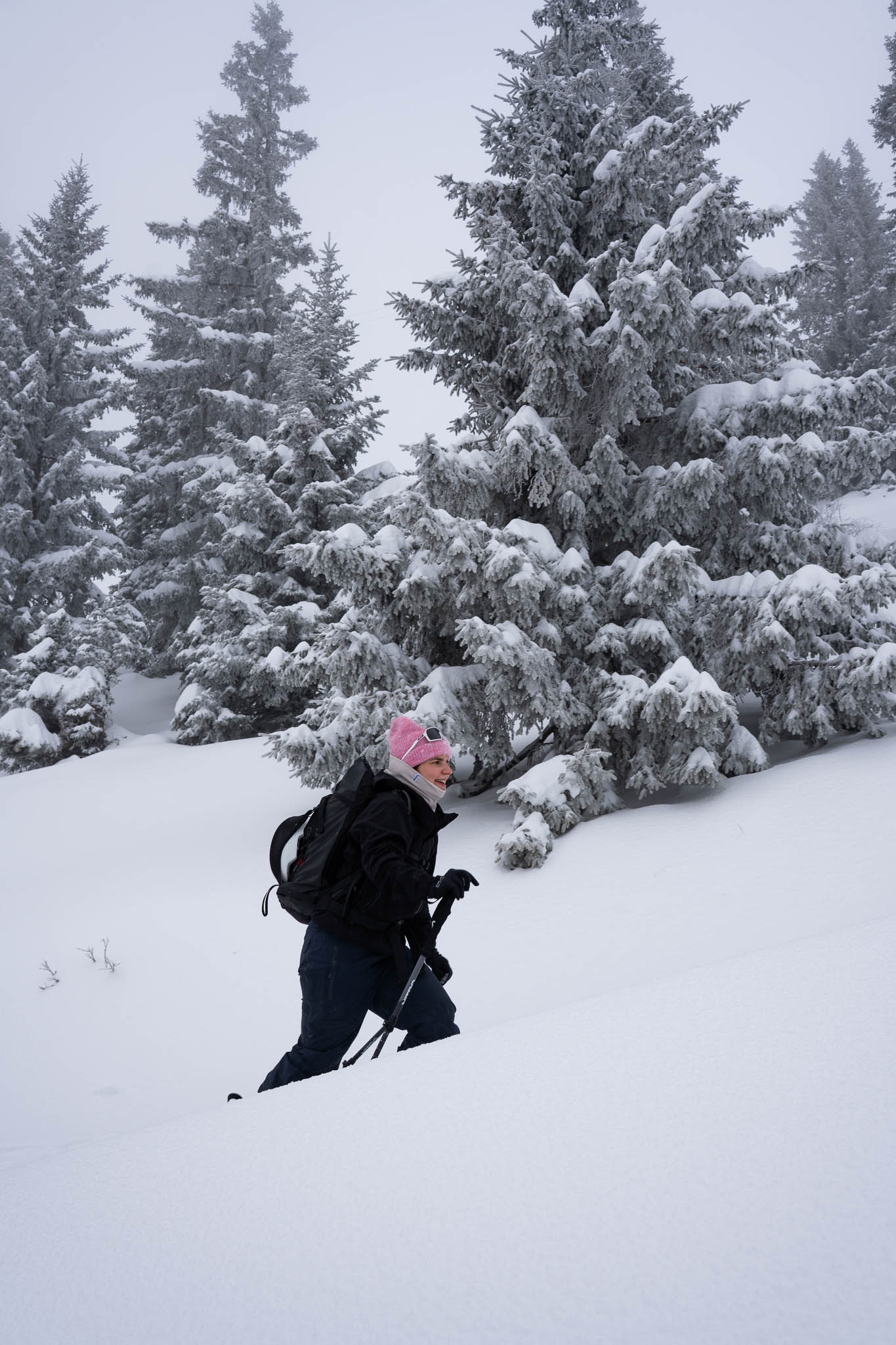 Da die Tour sehr beliebt ist, sind wir früh gestartet – und können es nur empfehlen. So waren die Hänge noch ruhig, die Spur relativ frisch und wir hatten den verschneiten Bergwald noch fast für uns allein. Außerdem hatten wir Freunde eingeladen, sich uns anzuschließen, und so waren wir schließlich eine Fünfergruppe – perfekt für einen gemeinsamen Wintertag am Berg.
