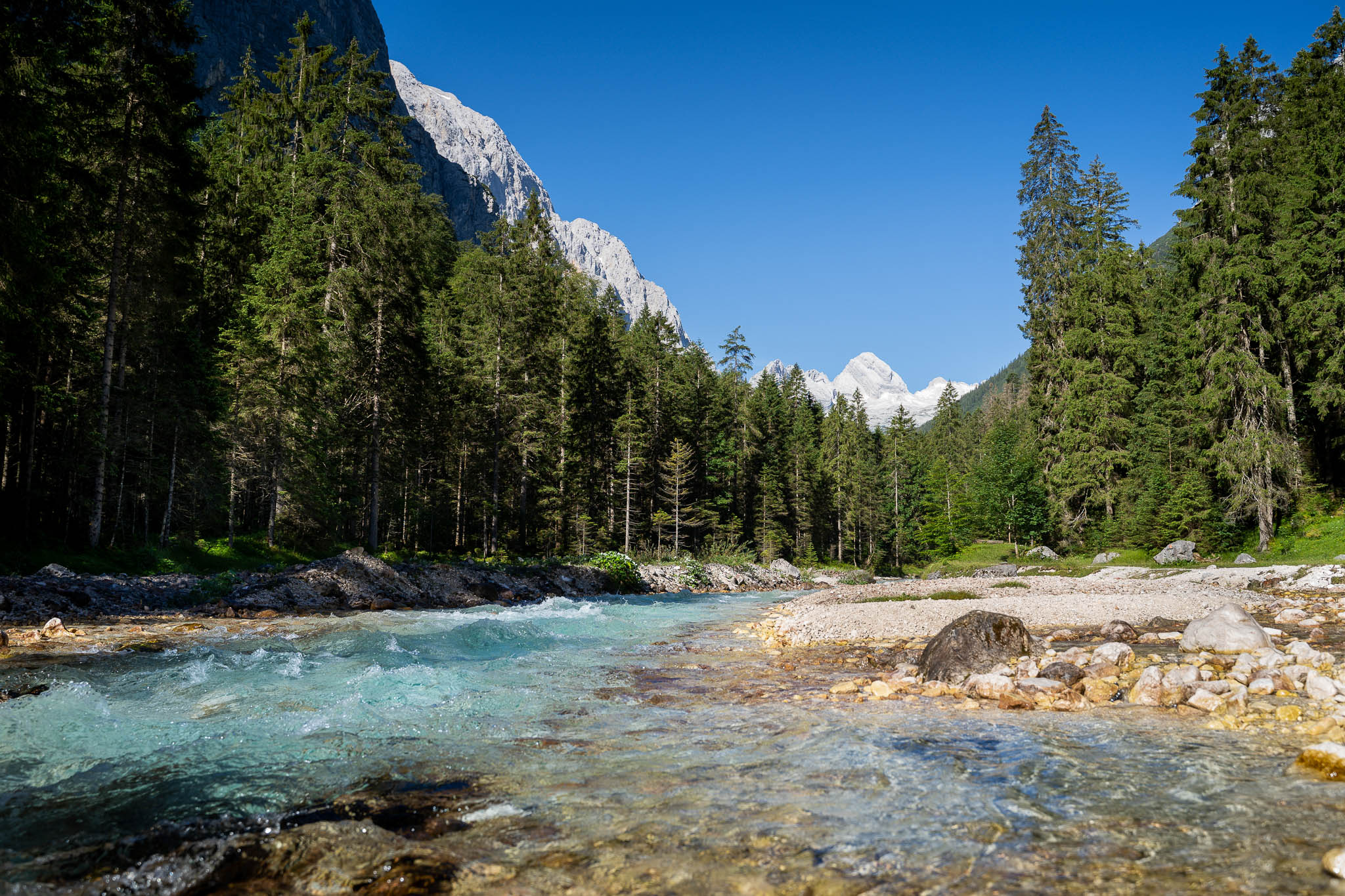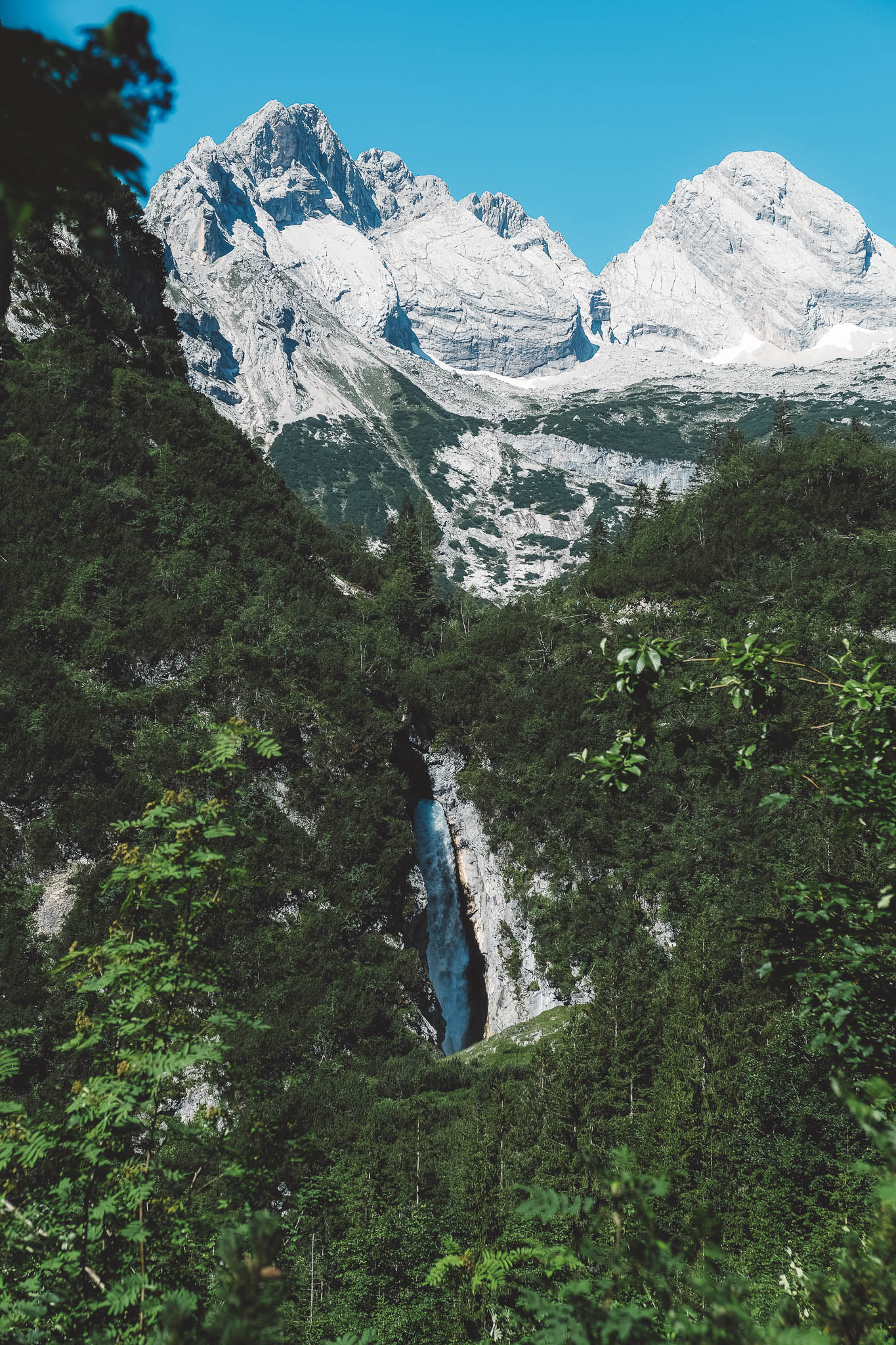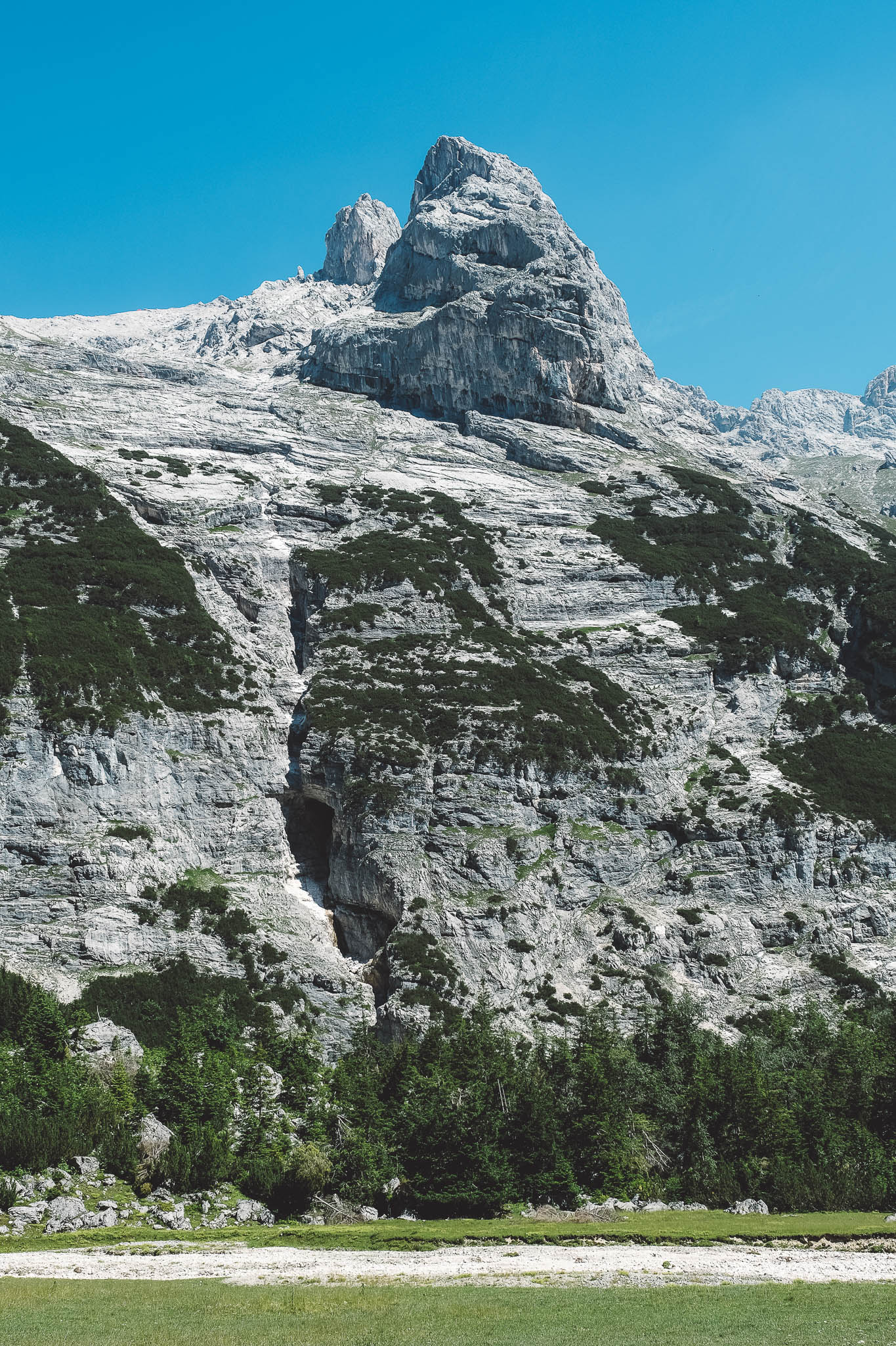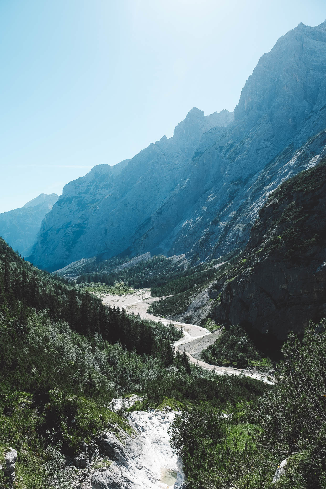 Am oberen Ende der spektakulären Klamm beginnt dann der etwas unspektakuläre Teil des gesamten Anstiegs – hier geht es erstmal in kaum spürbarer Steigung und ohne viel Abenteuer auf einem Fahrweg ins lange, aber landschaftlich wunderschöne Reintal. Erst kurz vor der Bockhütte wird der Weg langsam zum Wanderweg und die Steigung nimmt zu. Immer weiter, mit steil aufragenden Wänden rechts und links, geht es schnurstracks auf die Reintalangerhütte zu, die für viele Mehrtagestourler eine Übernachtungsmöglichkeit darstellt.