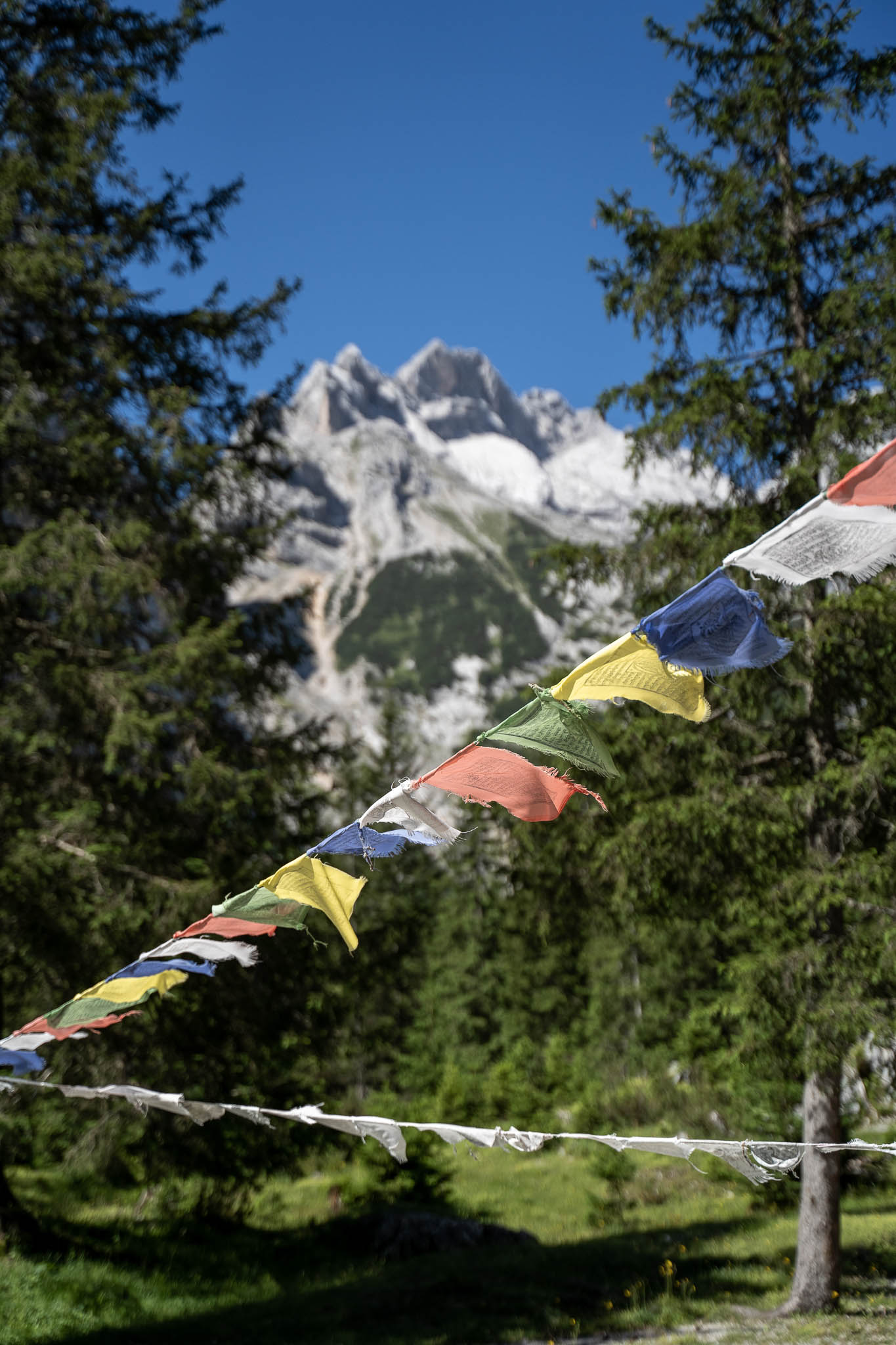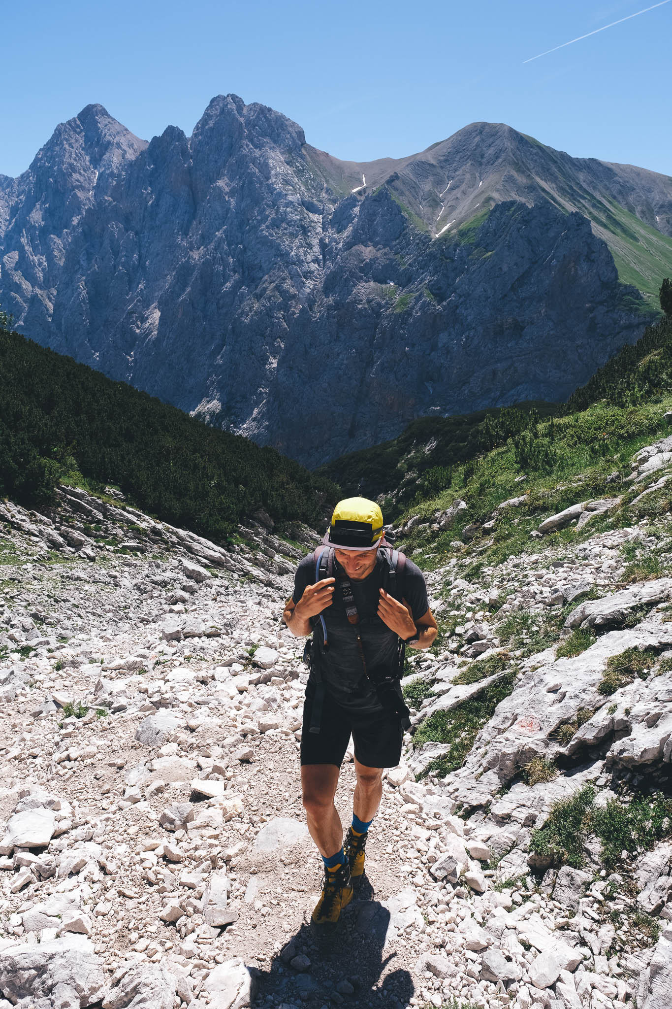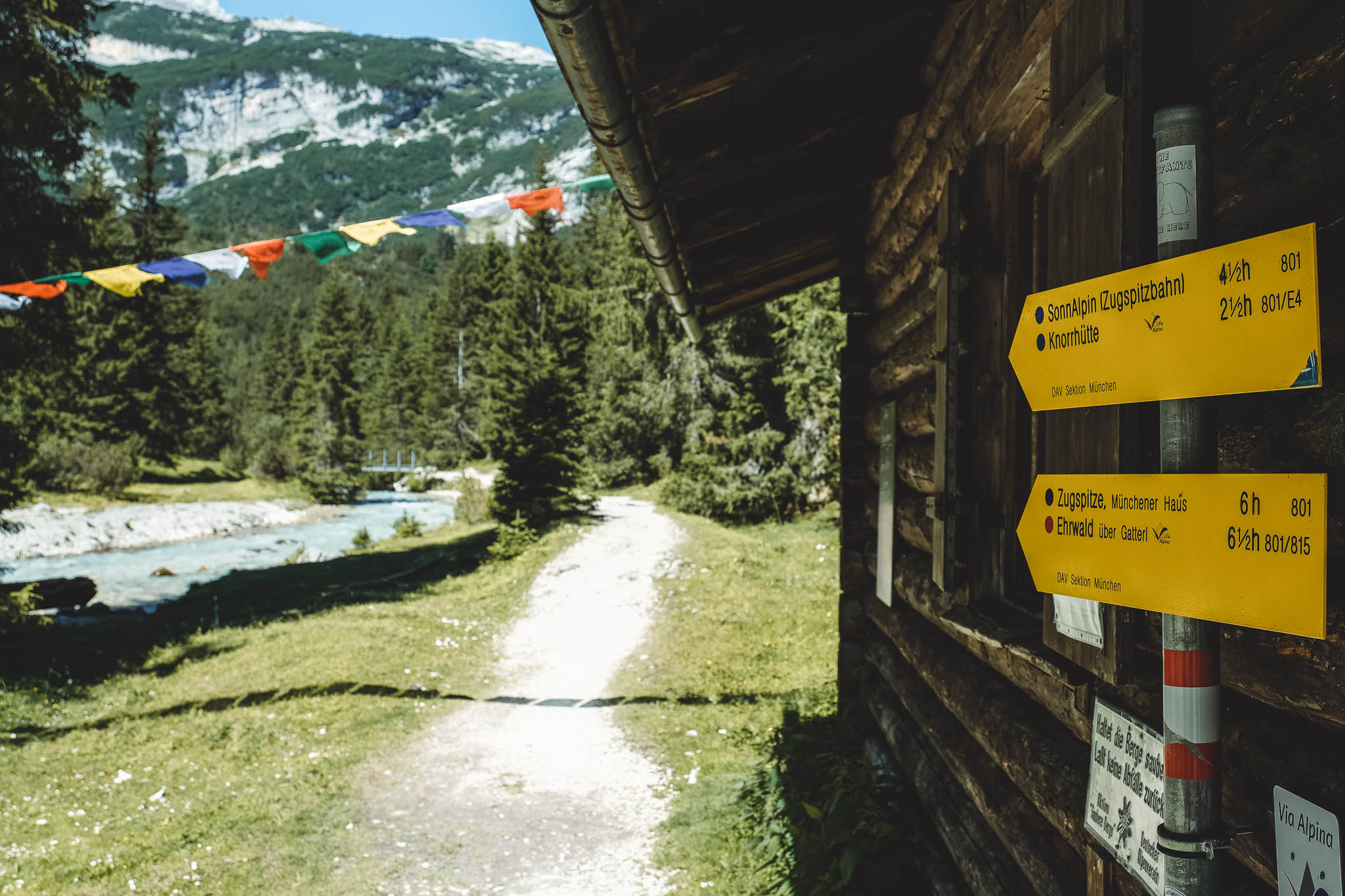 Ab der Reintalangerhütte bis zur Knorrhütte hinauf geht es nämlich schon deutlich steiler zu und durch den fehlenden Schatten oberhalb der Baumgrenze kommen wir ordentlich ins Schwitzen. An der Knorrhütte ist es daher höchste Zeit, die Trinkblase bzw. Wasserflasche wieder aufzufüllen. Hier bietet sich übrigens für die gemütlicheren Berggeher die zweite Möglichkeit zur Übernachtungsrast an.